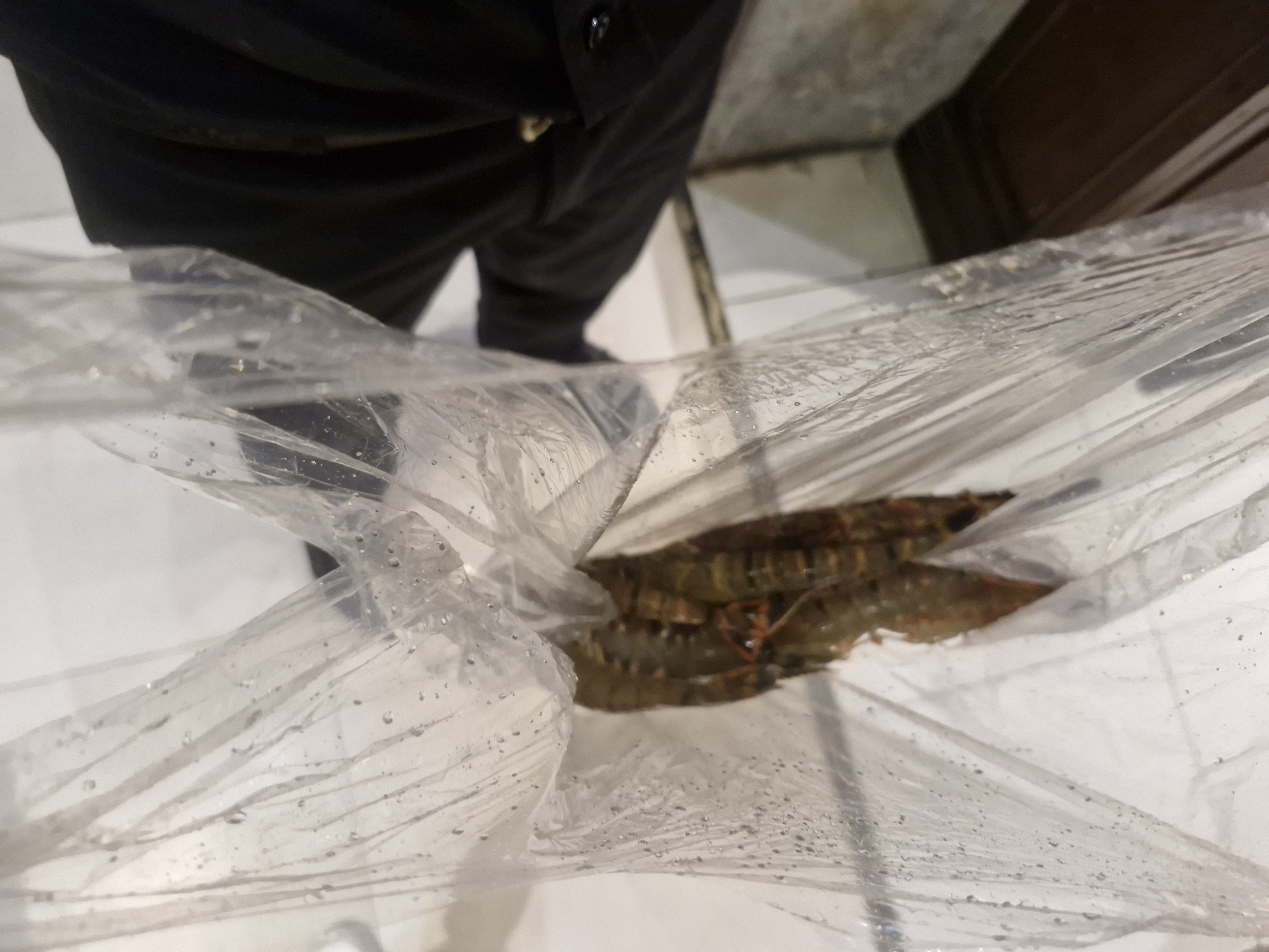 사진을 찍으라면 메니저 님께서 봉지에서 새우를 꺼내 보여주셨습니다.